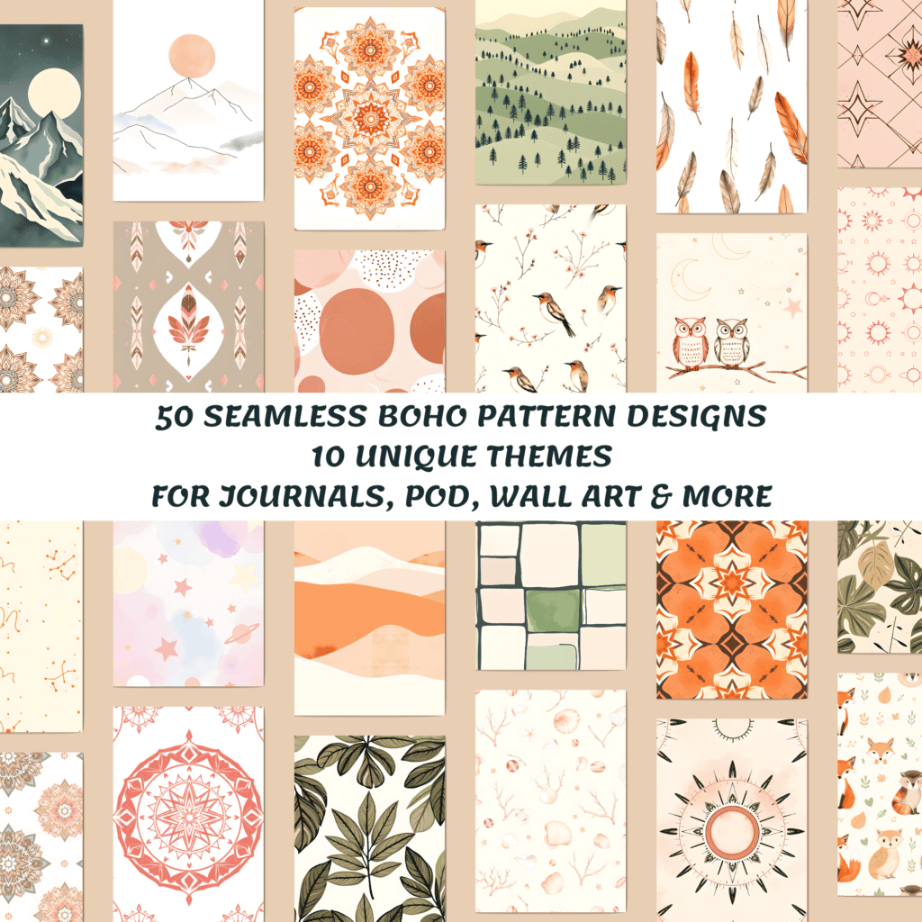 🌿 Elevate Your Creative Projects with 50 Seamless Boho Pattern Designs